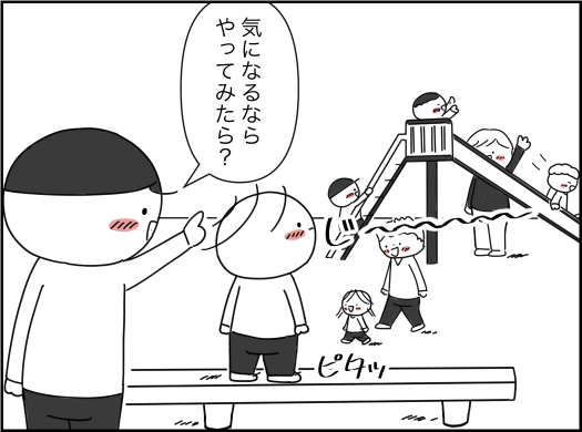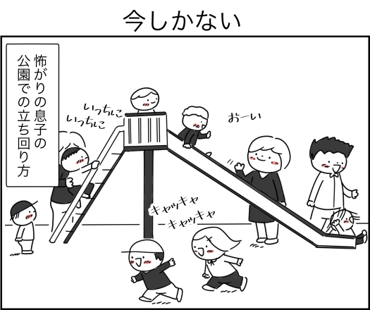 公園で遊ぶのが大好きなのに、怖がりだから他の子に緊張してしまいます。
