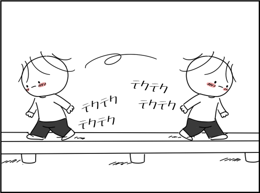 他の子が来ると遊びの途中でも別の遊具に移動します。