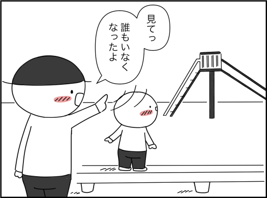 「公園たのしかった?」と私が聞くと「たのしかった」「また行きたいな」って毎回満面の笑みで言うので、本人はこの遊び方でいいようです。