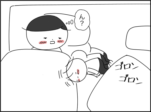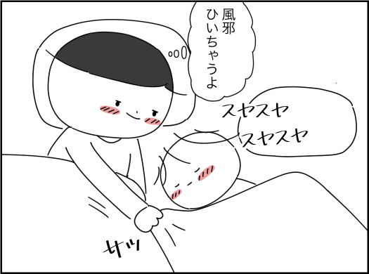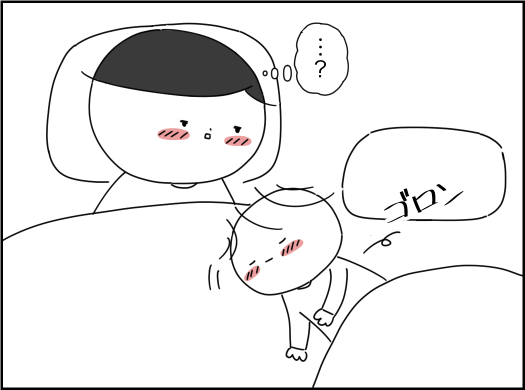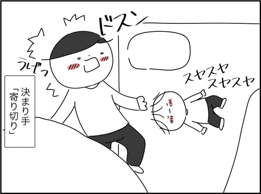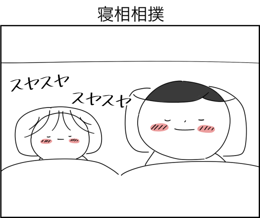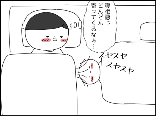 布団から落とされた私や妻の横で、穏やかな顔してスヤスヤ寝ています。